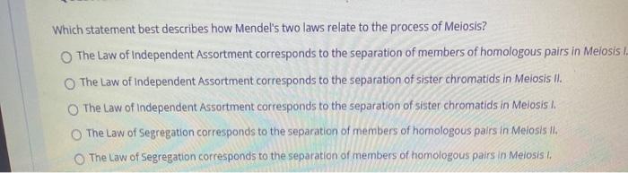Solved Which Statement Best Describes How Mendel S Two Laws Chegg Com